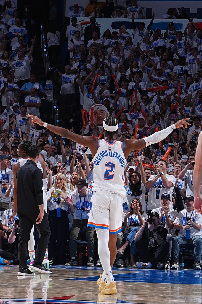 2024-25赛季,亚历山大为雷霆出战76场常规赛,场均登场34.2分钟可以砍下32.7分5篮板6.4助攻1.7抢断1盖帽;今年季后赛至今,亚历山大出场12次,场均上阵36.8分钟可以攻下29.2分5.8篮板6.6助攻1.6抢断。
