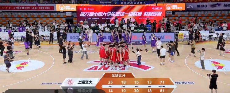 比赛开始,双方开场大打对攻,上海交大不断冲击内线拿分,清华大学内外开花迅速回应,吴泽昊打成2+1后飙中三分,上海交大完成12-2的攻击波获得两位数优势,陈天灿传射建功带队继续扩大领先,卢骏三分止血,石奎中投也有,首节结束上海交大25-14领先清华大学。