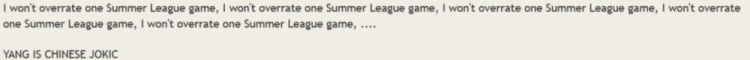 当然也有不如意处:夏联节奏太乱太快,杨瀚森又是第一次打NBA比赛,而且着意护筐:经常是位置没问题,但上半场就4犯规。