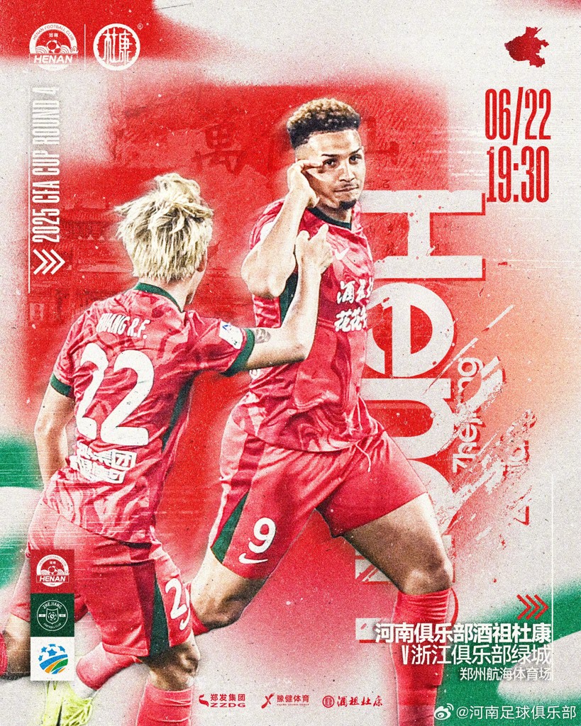 06月22日讯 北京时间今晚19点30,足协杯1/8决赛,河南vs浙江,赛前首发阵容公布。