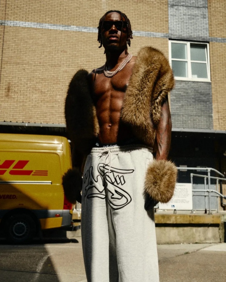 马杜埃凯近日与GQ杂志合作的一次拍摄中再次展示了自己对时尚的独特理解。在这次拍摄中,马杜埃凯身穿一件毛皮背心和手套,搭配灰色运动裤,以及一件超大号的巴黎世家羽绒服,尽显个性。