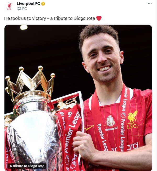 利物浦官方原文:The No.20 will be rightly immortalised for his contributions as part of Liverpool’s 2024-25 title-winners – the club’s 20th – with his trademark shimmy and strike in front of the Kop to seal victory in April’s Merseyside derby a poignant last goal of his life.